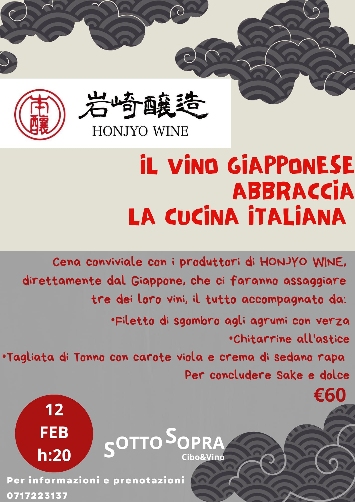 Unisciti a noi per una serata speciale dove il vino giapponese Honjyo Wine si sposa con la tradizione culinaria italiana! 🍶🍝 I produttori, direttamente dal Giappone, ci guideranno nella degustazione di tre dei loro vini, accompagnati da un menù esclusivo:
